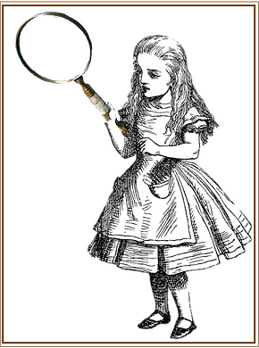The portly man scurried through the crowd, pushing people out of the way, to much uproar. He reached the large mushroom handing the looking glass to the Caterpillar, who promptly drew out a monocle and inspected the looking glass, turning it this way and that.